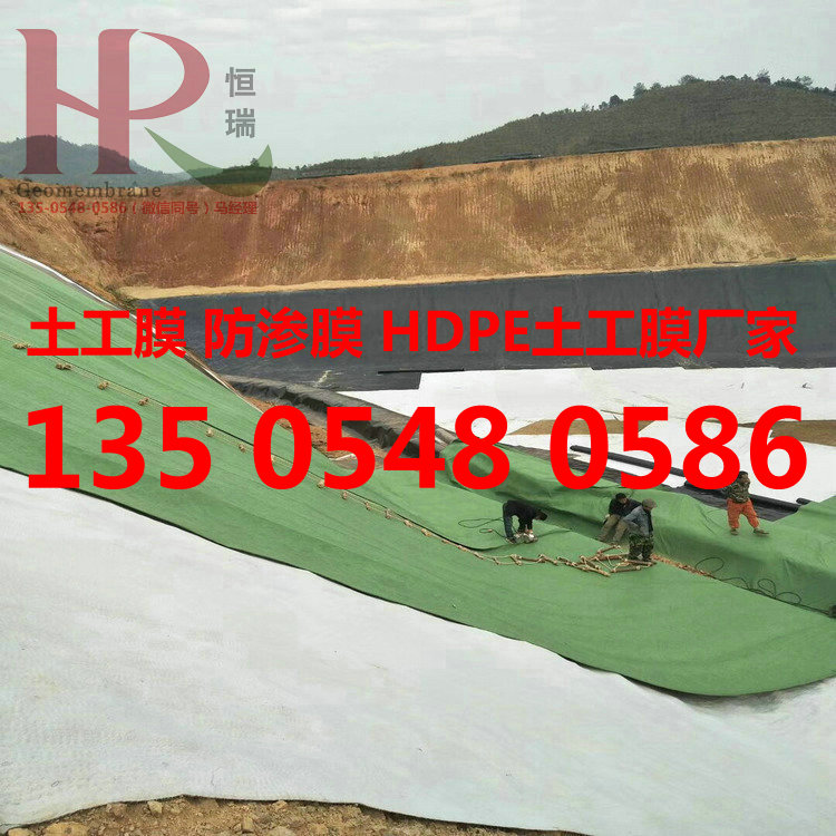 泰安恒瑞防滲膜具有良好的耐熱性和耐寒性,化學(xué)性好,具有較高的剛性和韌性,機(jī)械強(qiáng)度好,耐應(yīng)力開裂與耐強(qiáng)度性能好,隨著密度的上升,機(jī)械性能和阻隔性能會(huì)相應(yīng),耐熱,和抗拉強(qiáng)度也更高;可耐酸、堿溶劑等腐蝕.在冬季后,合理規(guī)劃,首先將池水排干,挖去雜物淤泥,晾曬1冬一20天后,在池底和邊坡均勻地鋪貼一層15一20厘米厚的粘土,然后用機(jī)械碾壓或夯實(shí)。然后鋪設(shè)一層0.5毫米厚的防滲膜做防滲保護(hù)層,按照魚塘的形狀準(zhǔn)確丈量其相關(guān)尺寸,然后按實(shí)際情況來裁剪和拼接防滲膜,膜與膜之間接縫的搭接寬度一般不小于15厘米,防滲膜鋪設(shè)完成后,應(yīng)盡量在膜面上行走、搬動(dòng)工具等,凡能對(duì)防滲膜造成危害的物件,均不應(yīng)膜上或攜帶在膜上行走,以免對(duì)膜造成意外損傷。后在護(hù)坡上撒播一些草種,實(shí)行草皮護(hù)坡,以防雨水沖刷。1.5mmHDPE防滲膜目前可執(zhí)行的標(biāo)準(zhǔn)有三個(gè),相同厚度不同執(zhí)行標(biāo)準(zhǔn)的HDPE防滲膜價(jià)格不同。